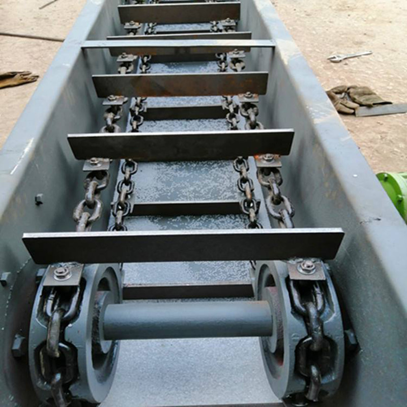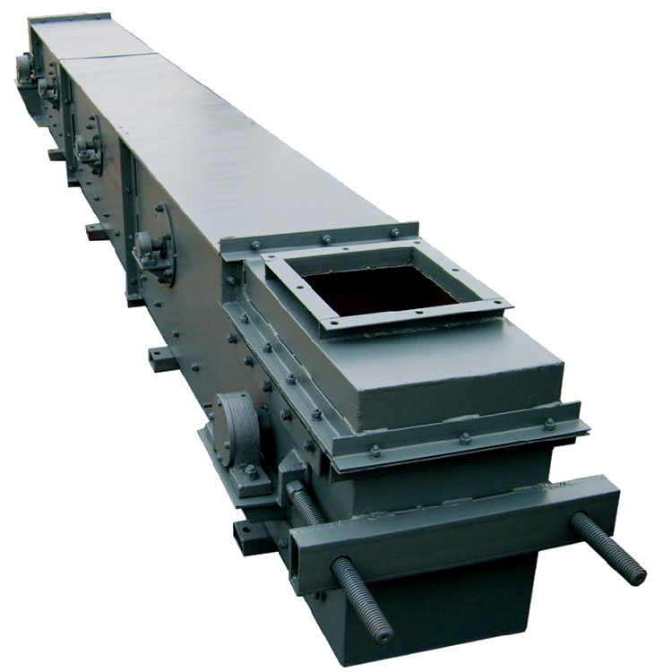 埋刮板输送机整机结构合理,可以多点加料,也可以多点卸料。刮板链条在电动机+减速机的传动下均匀运行移动,运行平稳,噪音低,埋刮板输送机是倍受冶金、矿山、火电厂欢迎的散状物料输送系统设备。埋刮板输送机有MS、MC、MZ型埋刮板输送机三大系列可供选用。是一种在封闭的矩形断面或圆管型断面的壳体内,借助于运动着的刮板链条连续输送散状物料的运输设备。